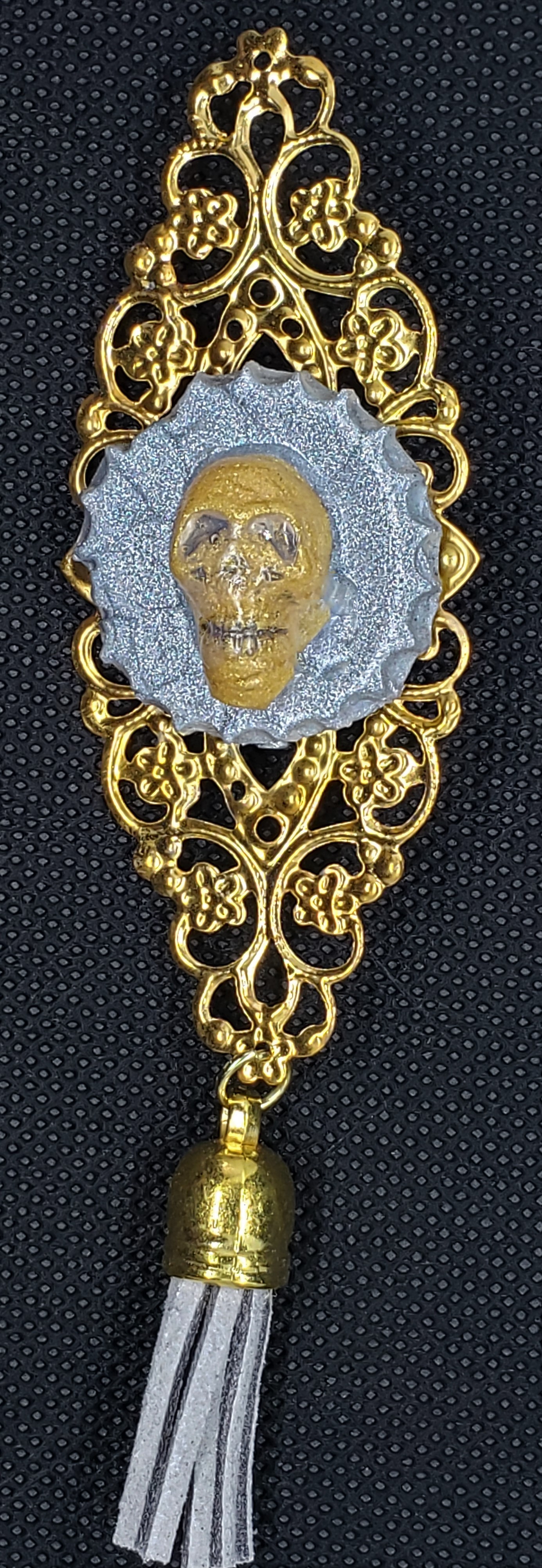 These unique, original medals belong exclusively to the captain and crew of the AS Lightning. Each is handcrafted of raw brass components, handcut polymer clay, or found objects. Can be worn as a pendant; if you would like it converted to a pin please let us know upon checkout.
