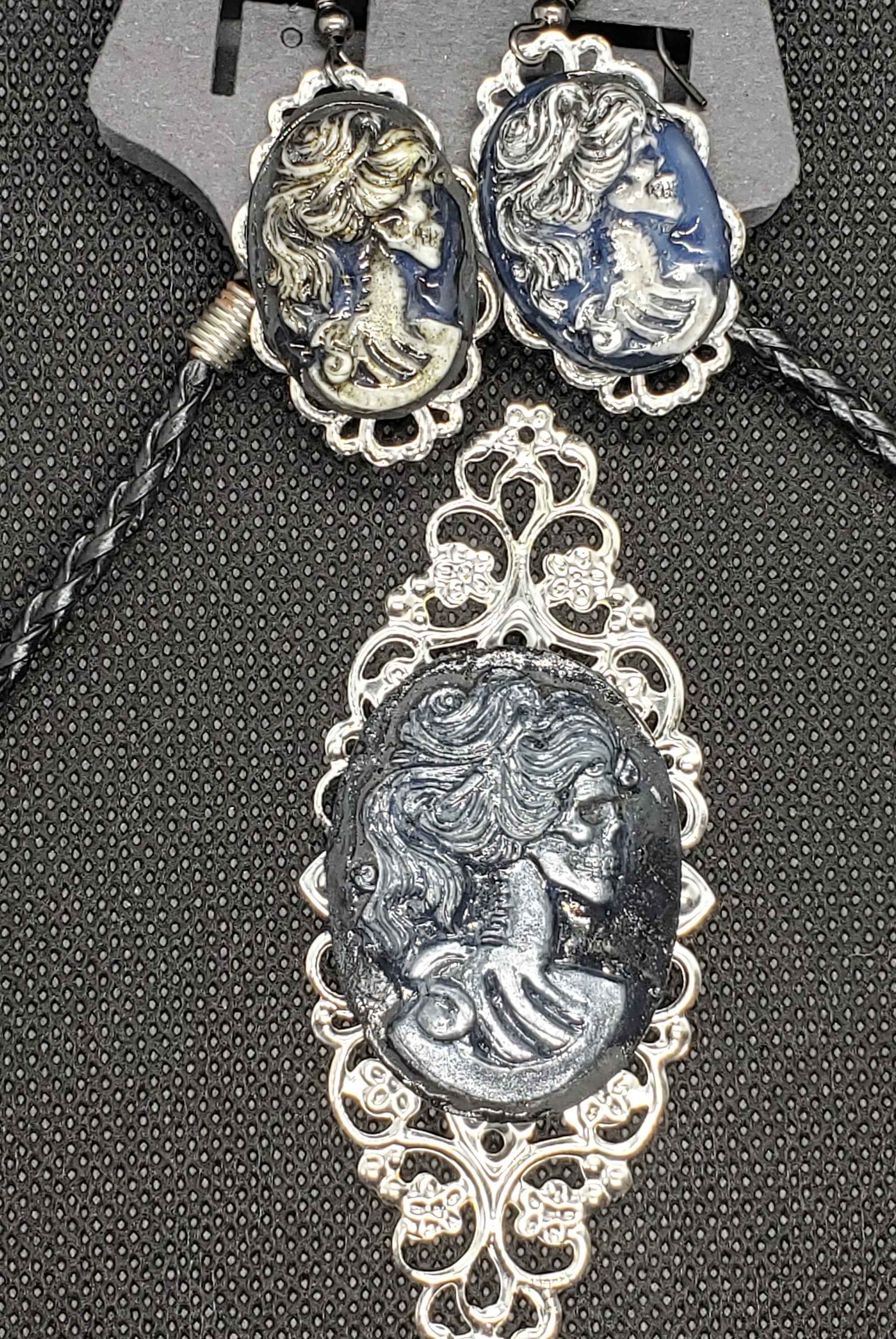 Air Pirates' widows are presented with this lovely set, along with a flag from the ship and a modest pension. Lovingly crafted of polymer clay and sealed to protect, this set is perfect for a reenactment, a con, a date night, or a day at the office! Fishhook earrings; necklace comes with a braided leather cord.